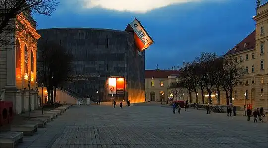 Перевернутое здание на крыше другого здания. Вена, Австрия