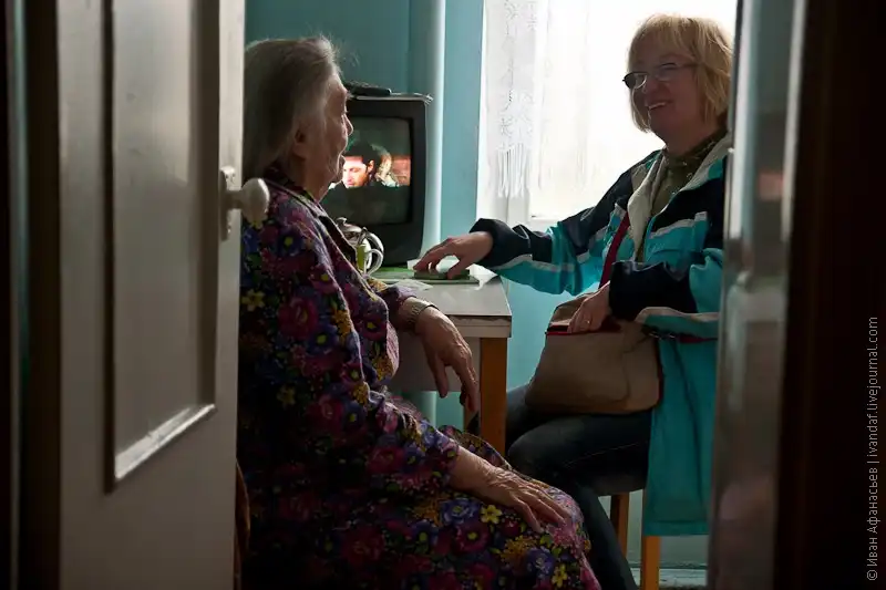 Социальный работник обслуживает незащищенные и слабозащищенные слои населения — обычно это бабушки и дедушки, которым трудно ходить в магазины и бюрократические инстанции, а некоторые и вовсе не ходят. Конечно, в обязанности входит не только «доставка продуктов» и оплата ЖКХ, но и психологическое присутствие — простое живое человеческое общение.