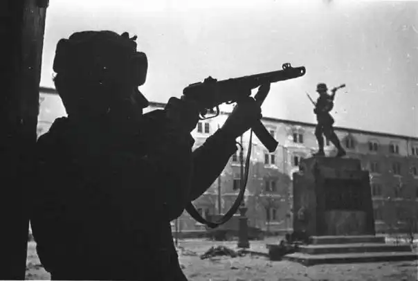 Не перепутайте,это русский разведчик с трофейным мп,а не немецкий егерь.