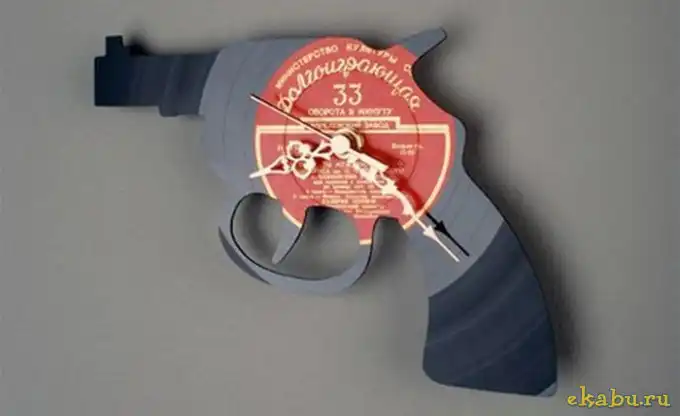 мы просто к пластинке приделали стрелки и часовой механизм весь, не вырезая ничего...)