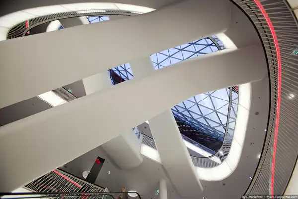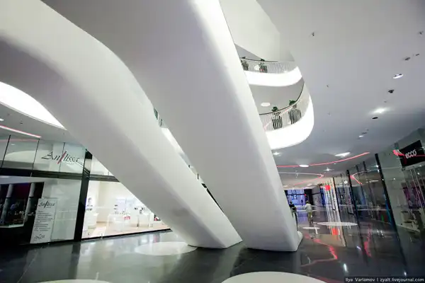 Торговый центр «Майцайль» расположен на главной торговой улице Zeil, Франкфурт-на-Майне, Германия. Достроен и торжественно открыт в начале апреля 2009 года. На 6 этажах (около 52000 м2) расположены более 80 всевозможных магазинов, бутиков, рестораны, кафе, фитнес-клуб с бассейном, детские площадки. Архитектор: итальянец Ассимилиано Фуксас. Бюджет проекта: 960 млн. евро. Главная особенность проекта - два полых «водоворота», или «каньона», как их называет сам архитектор. Один из них связывает все ярусы постройки, как бы затягивая внутрь здания с крыши его оболочку. Другой соединяет главный фасад и крышу: через него прогуливающиеся по улице Цайль горожане могут увидеть кусочек неба. Плавно перетекающее пространство интерьера здания наполнено солнечным светом.