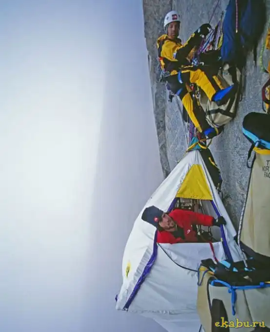 О даааа,ползти на тысячу высот,чтобы поспать в позе летучей мыши,типа хер на то если шлепнемся вниз,зато медведи не достанут!