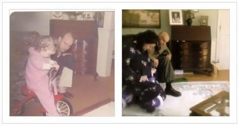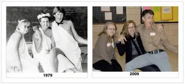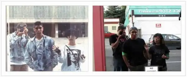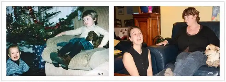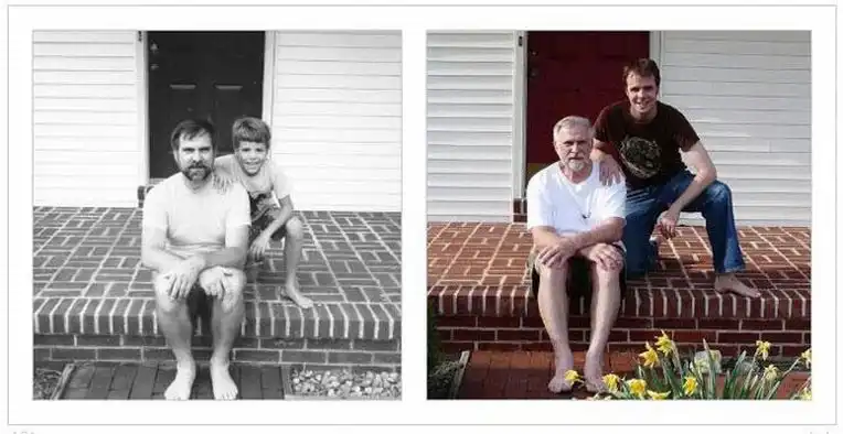 Но в данном случае люди реконструируют именно ту сценку, которая была запечатлена на снимке многолетней давности.