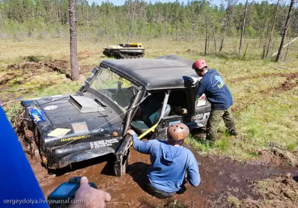 Каждый год любители бездорожья собираются вместе, чтобы на своих доработанных внедорожниках поучаствовать в гонках в Ладоге.