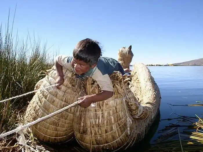На озере Титикака, что в Южной Америке, есть сплетенные острова.На них живут индейцы, которые давным-давно ушли сюда, спасаясь от испанцев.Как рассказывают туристы, люди в тех краях не испорчены цивилизацией, они добры и открыты.