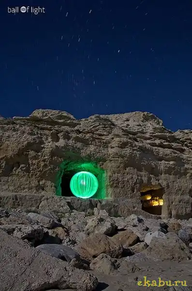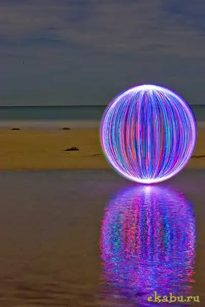 Наверное это фотографии с очень длинными выдержками, а в центре этих шаров стоит тип, который раскручивает горящий светодиод, ну или лампочку, на веревке вокруг себя. Смотрится необычно, но если честно, как-то бессмысленно )