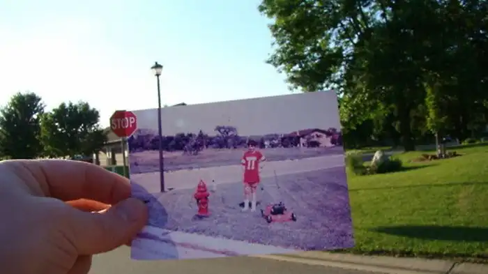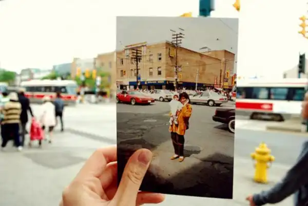 Есть такой ностальгический сайт, своеобразное фотопутешествие в детство. Люди берут старые фотографии и делают снимок на том же месте. Визит в прошлое.