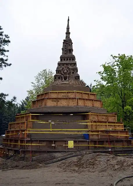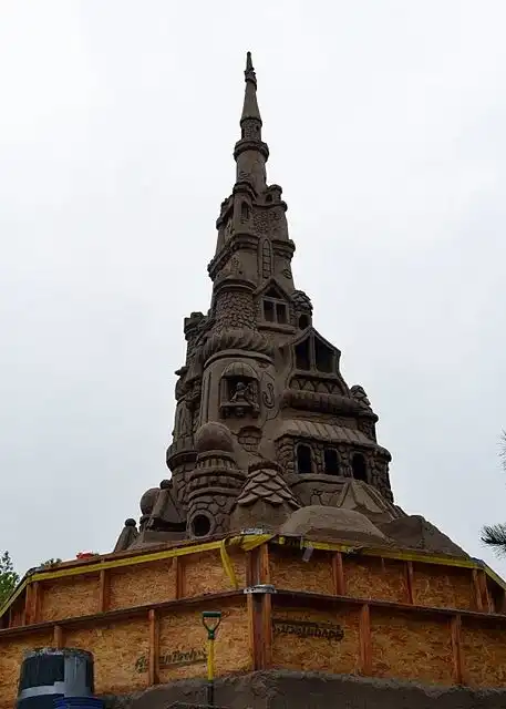 Ed Jarrett построил свой первый замок в 2003 году. Потом он решил сделать замок побольше, потом еще больше и еще. В итого с 1500 добровольцами он построил САМЫЙ большой песчаный замок в мире. На это у них ушло 2500 часов. first built the world’s tallest sand castle in 2003, then broke his own record in 2007, and now his back with his third consecutive record, a 37-foot, 10-inch sand marvel.