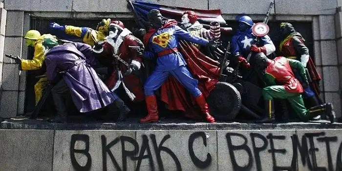 ну такто если абстрагировацца от нагруженного прошлого то прикольно получилось, я бы гденибудь в пендосии сам бы может так поглумилсо. Но как истенный потриот своей родины я скажу что болгары как и румыны с хохлами и ваще вся эта финно-угорская п*здобратия заслужывают мучительной смерти. А художнека еще перед смертью нужно отьебать кулаком в жопу.