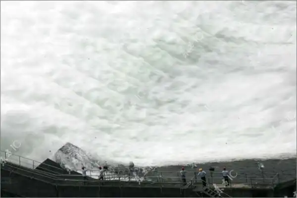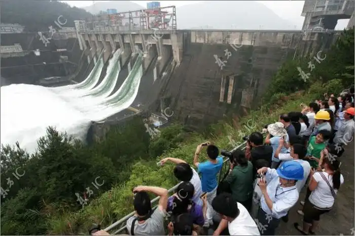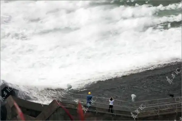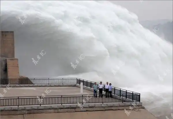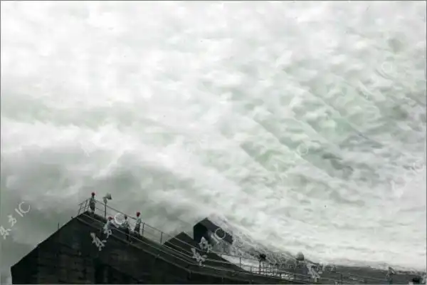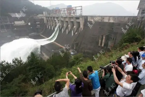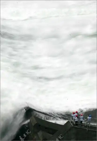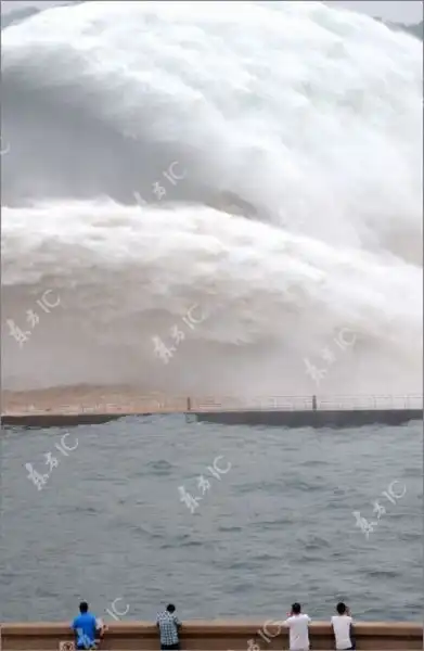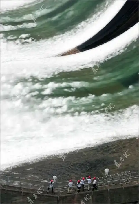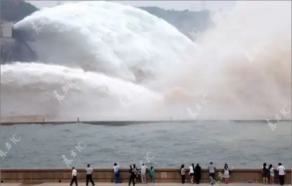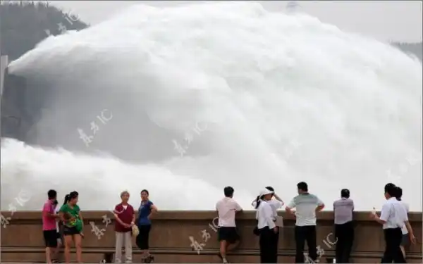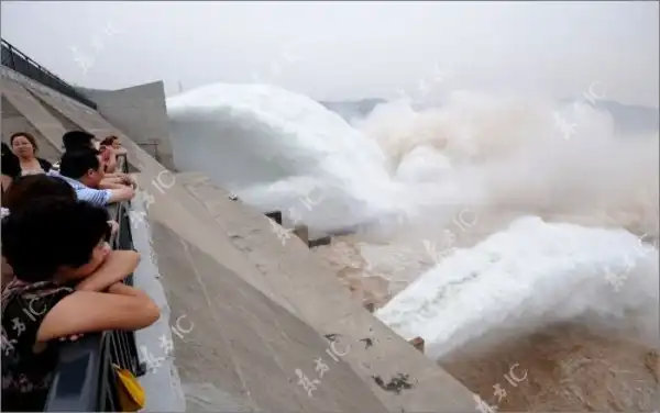 После проливных дождей в Китае значительно поднялся уровень воды. Поэтому было принято решение открыть дамбы, чтобы спустить воду. Поглазеть на это зрелище пришли сотни зевак.