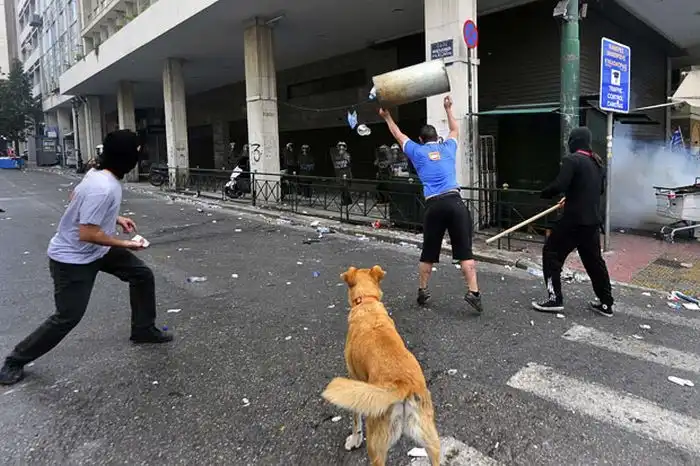 Анархия в Греции: оппозиционеров вдохновляет собака Сосиска