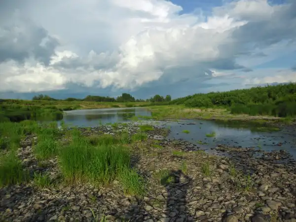 идёшь по воде, а по ногам ручейки по щиколотку бьют, и вокруг зелень прям ммм*))