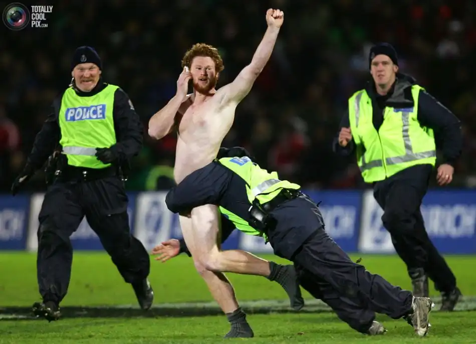 Нет, ну нормальные вообще люди?! И в основном мужики! Зачем голыми-то? Ну придумали бы костюм какой оригинальный что ли, в поддержку любимой команды и бегали уж себе на здоровье! М-да...