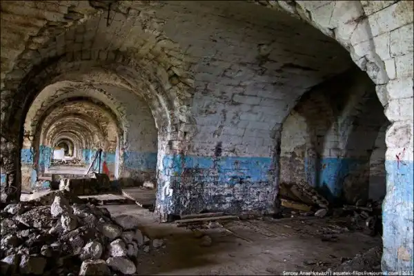 Коридор первого яруса, объединяющий орудийные казематы с левой стороны и жилые помещения - с правой