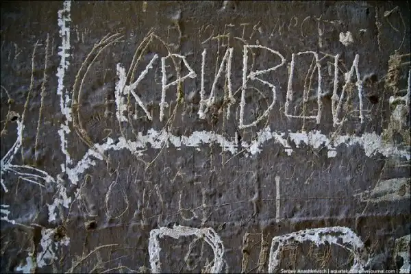 Самые рвущие душу надписи нужно искать под нанесенными сверху слоями краски и новыми письменами. Внимательно смотрите над и под большими буквами слова "Кривой". Сверху - нас осталось трое, снизу - умЕраем за род