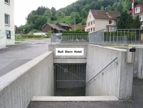 Первый в мире нулезвёздочный (no star или zero-star) отель, именуемый также Null Stern Hotel, работает в городке Севелен.