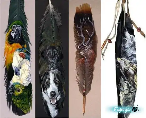 Рисунки на перьях [3 фото]