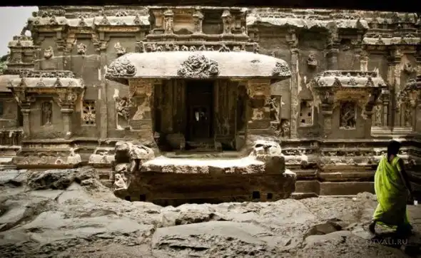 Эти пещеры были построены 6-9 столетии нашей эры сейчас под защитой ЮНЕСКО. Пещеры Эллоры находятся возле одноименной индийской деревушки.