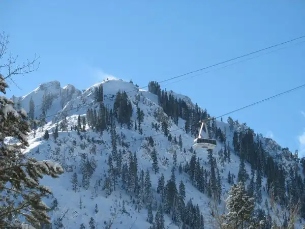 Снег сдувает с вершины Скуо Вэлли. В апреле 1978 года здесь произошел несчастный случай во время урагана, когда два каната дороги в Калифорнии оторвались от башни. Один из кабелей повредил кабину, в результате чего погибли 4 человека, и были ранены 32.