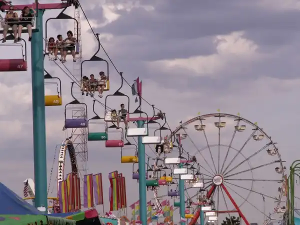 Ярмарка в Нью-Джерси. Эти пассажиры канатной дороги определенно счастливы.