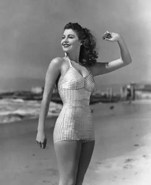 да, тогда девушки выглядели куда более женственно в таких купальниках, чем в наше время... не купальники, а одно название - либо веревочки одни, либо всё вычурно и безвкусно. и каждая пытается перещеголять другую, якобы такая красавица-раскравица, и пофиг, что бока висят и целлюлит... эх, прошла мода на настоящую красоту