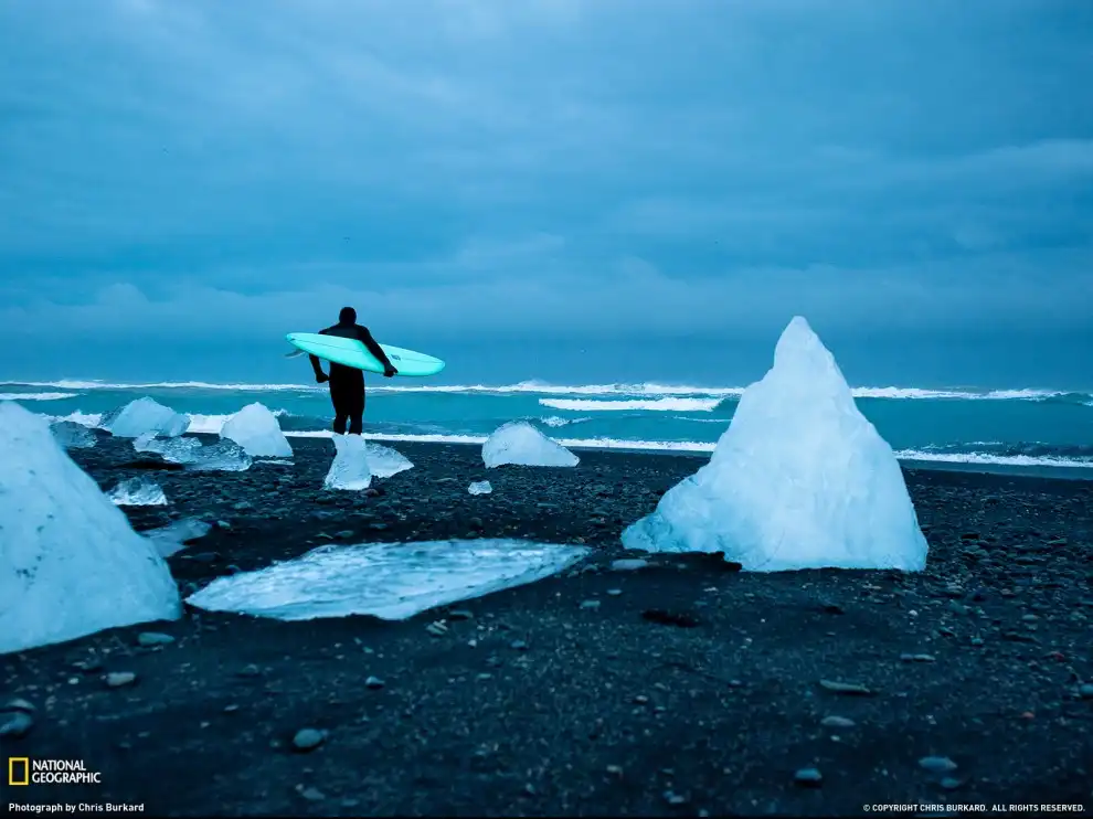 Серфер Кейт Малой в Исландии, ветеран так называемого «холодного» серфинга. Вода в этот день была просто ледяная!