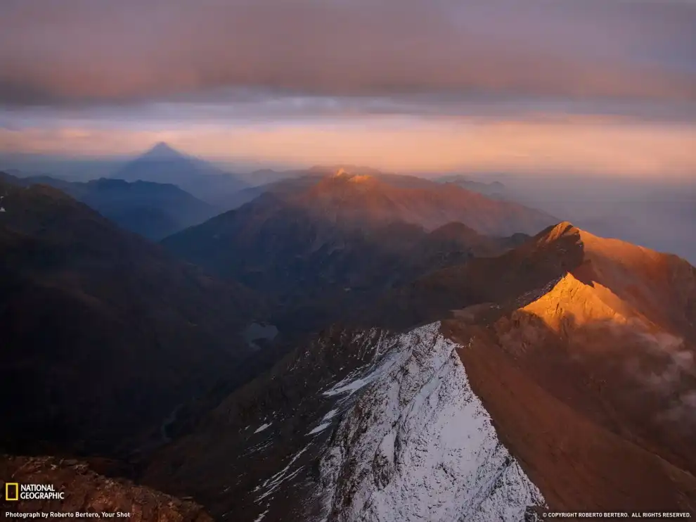 Гора Роккиамелоне, Италия, на закате. Высота горы составляет 3538 метров (11603 фута).
