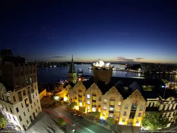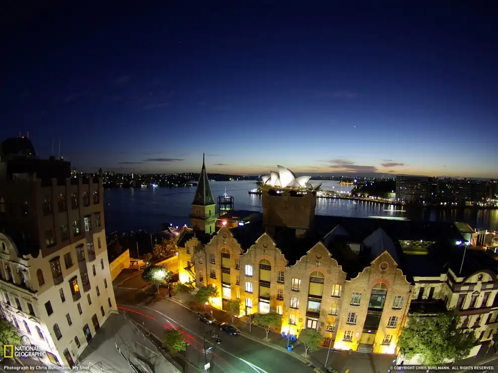 Старый Город, Сидней, Австралия, на рассвете. Фотография сделана с крыши гостиницы. Вдали видно здание Сиднейской оперы.