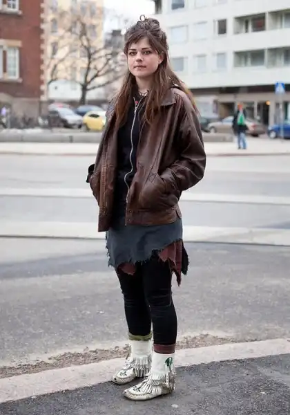 - джинсы скинни, цветные леггинсы, разодранные до больших дыр колготки;