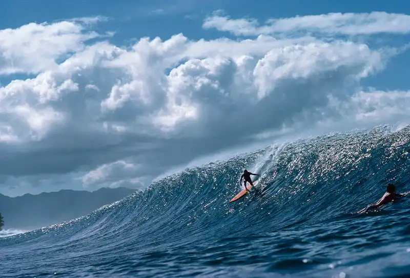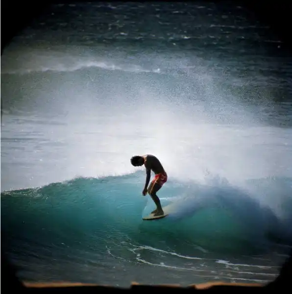 Он встал на доску в четырнадцать лет, в начале тридцатых. А в сорок два, поддавшись уговорам врачей забросить вредящее его здоровью хобби, променял ловлю волн на ловлю моментов в видоискателе фотокамеры.