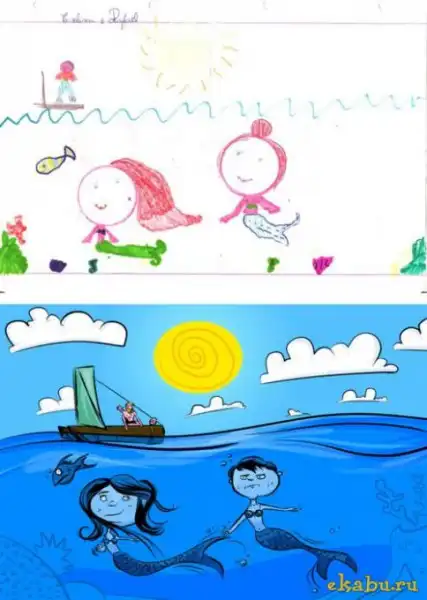 Фантазия ребенка безгранична). У каждого свое видение одного и того же при этом будет всегда. Особенно у юного художника...вспомните свои рисунки)
