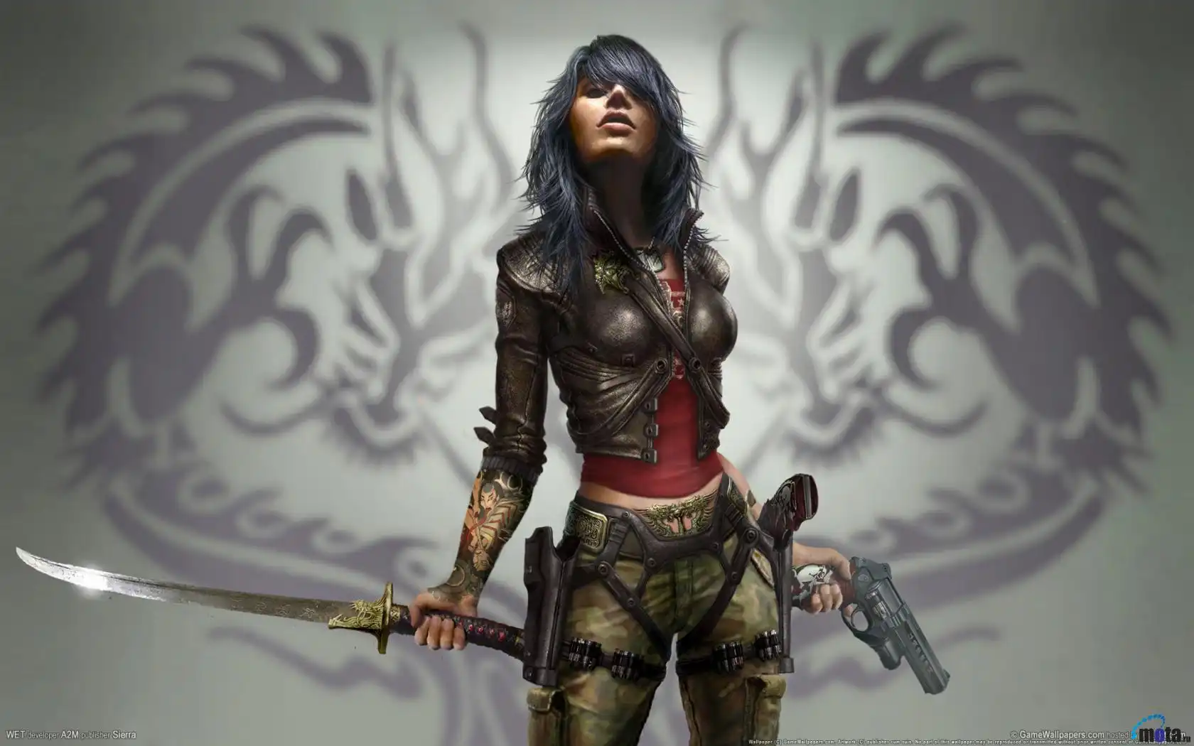 HS(рыжая с длинными волосами) WET(где пистолет и меч)