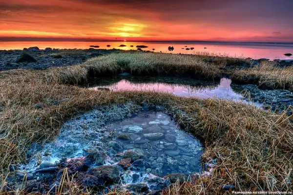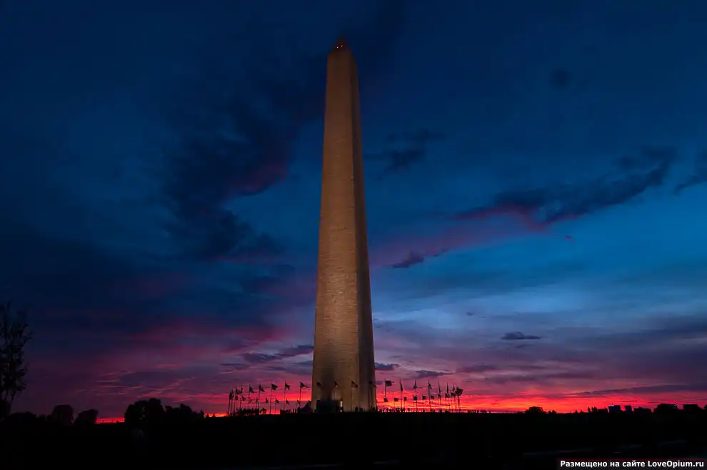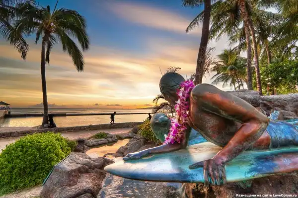 Закат на Гавайях и монумент. (Фото Bobby Bradley):