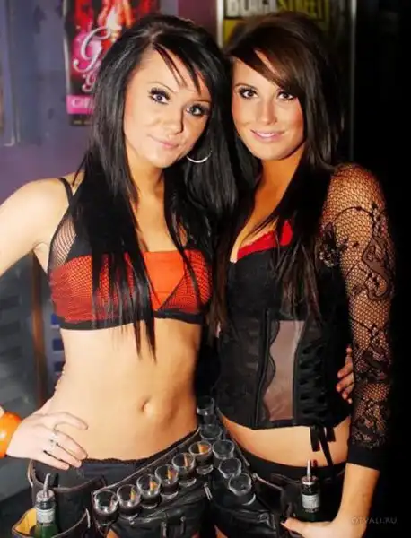 Красивые девушки предлагают выпить.