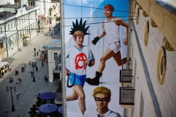 За 15 минут они успели разрисовать плакат до неузнаваемости.