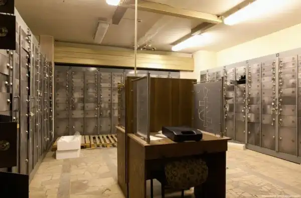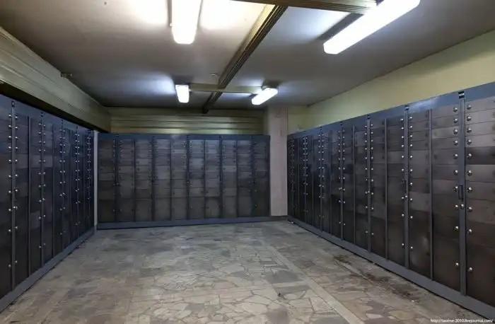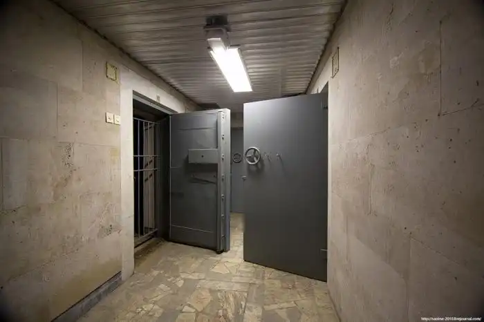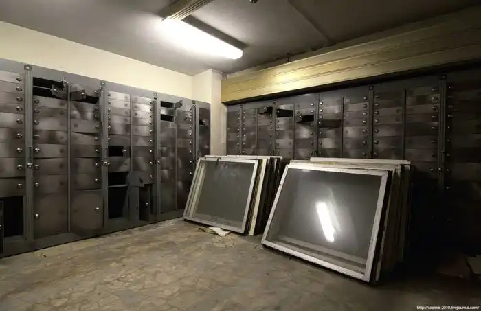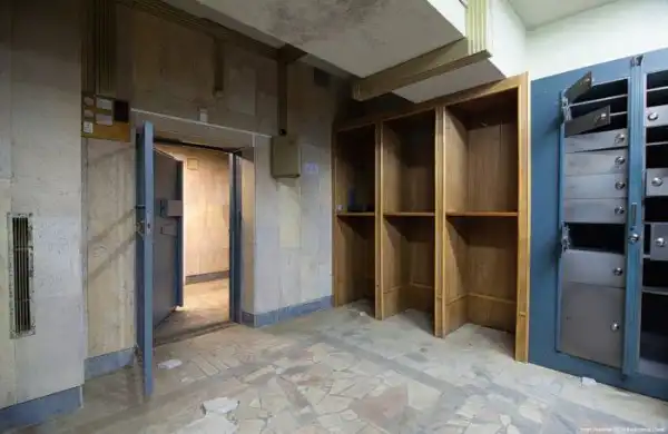 Тут чисто, горит свет, только инкассаторские мешки и открытые ячейки говорят о том, что тут никого уже давно нет.