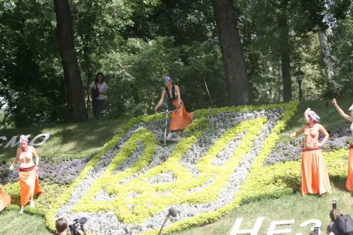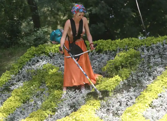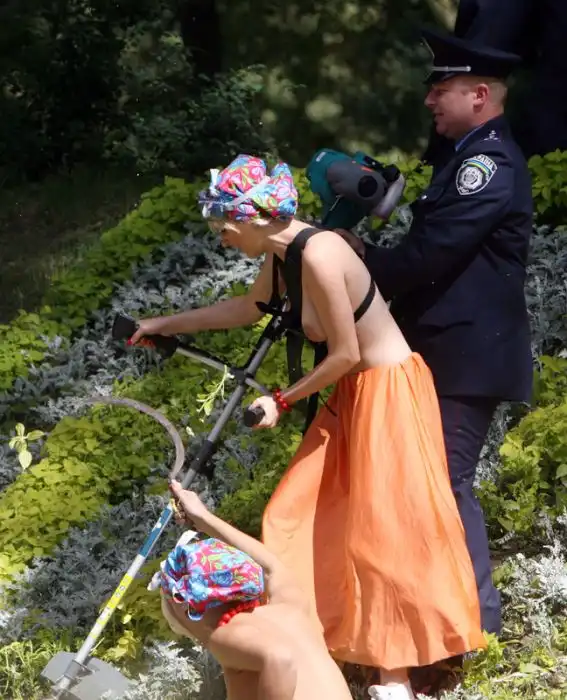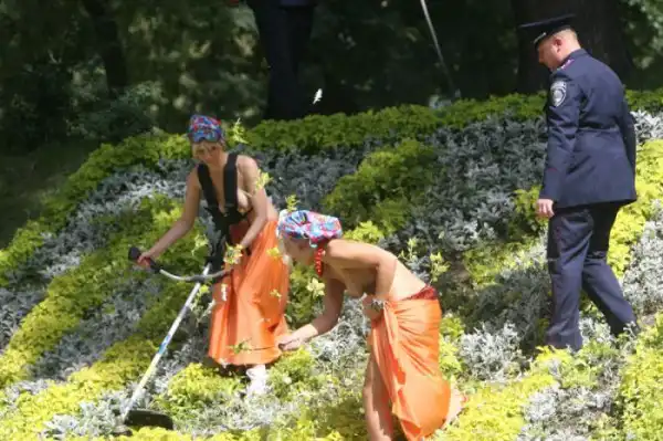 Вот хохлушкам заняться нечем. С голыми сиськами рвать клумбы... Мда...