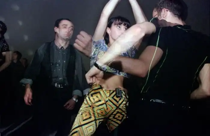 Милиционеры бьют зрителей, рвущихся к сцене во время рок концерта на Красной площади.1996 год.