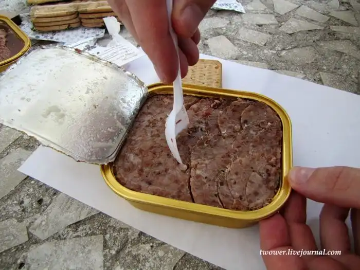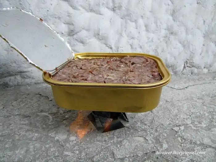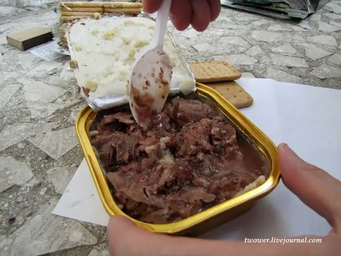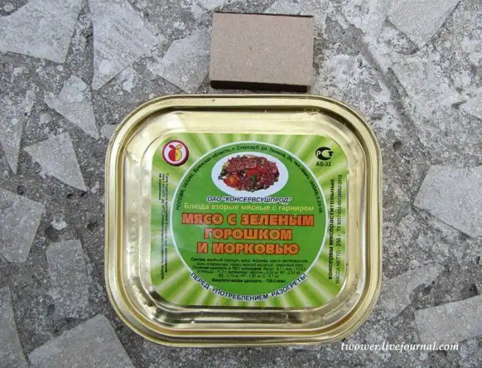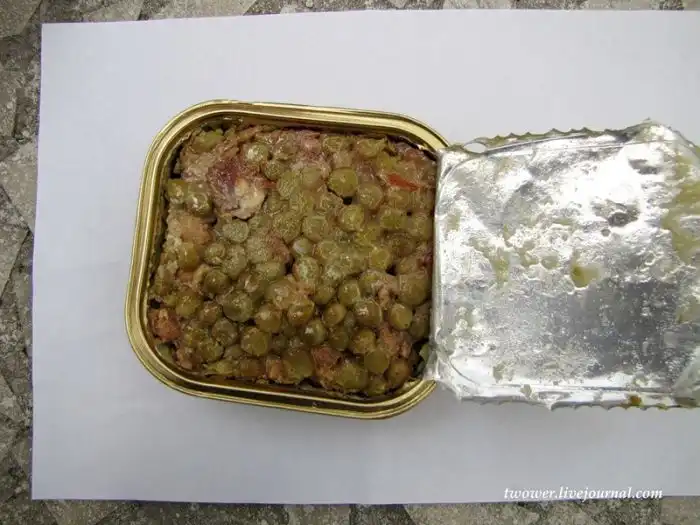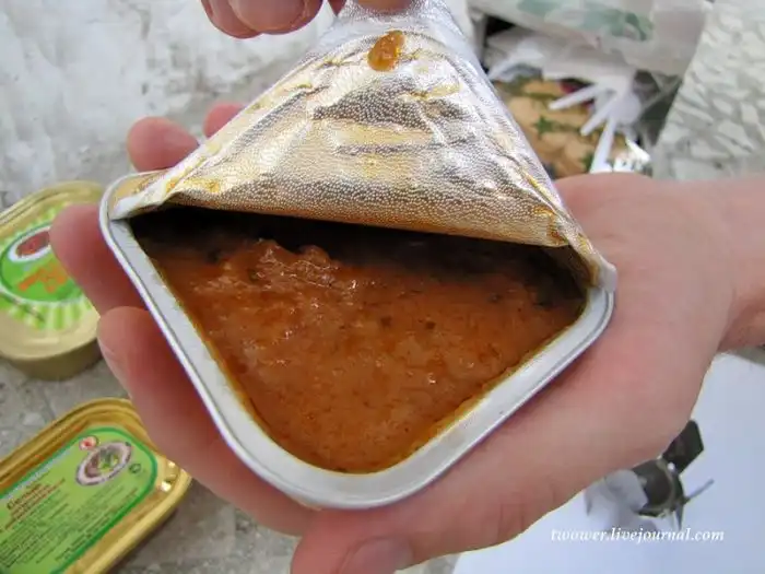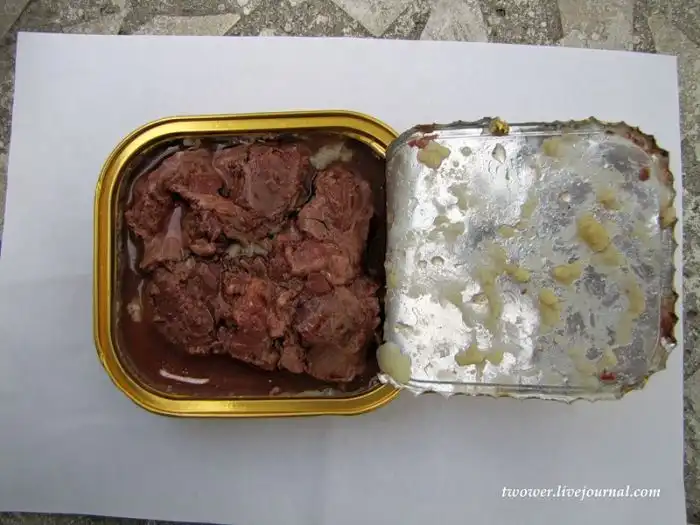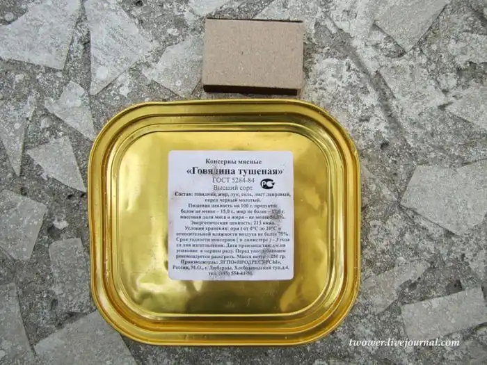 Тушняк по качеству такой и даже лучше можно и в магазине купить, производитель Йошкар-Ола (ГОСТ), у которой уже полсрока прошло, это значит, что она из госрезерва, и не для обычных солдат, а для власти.