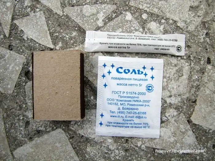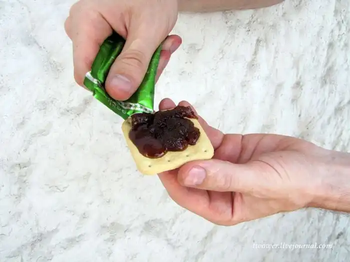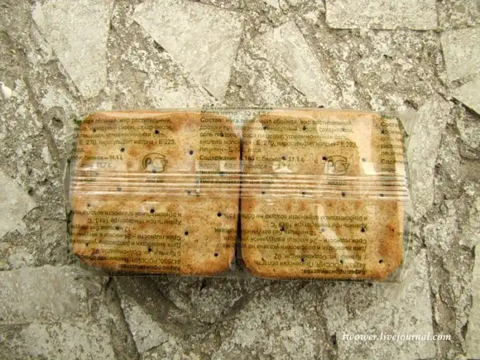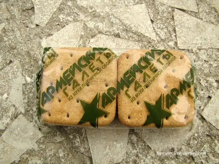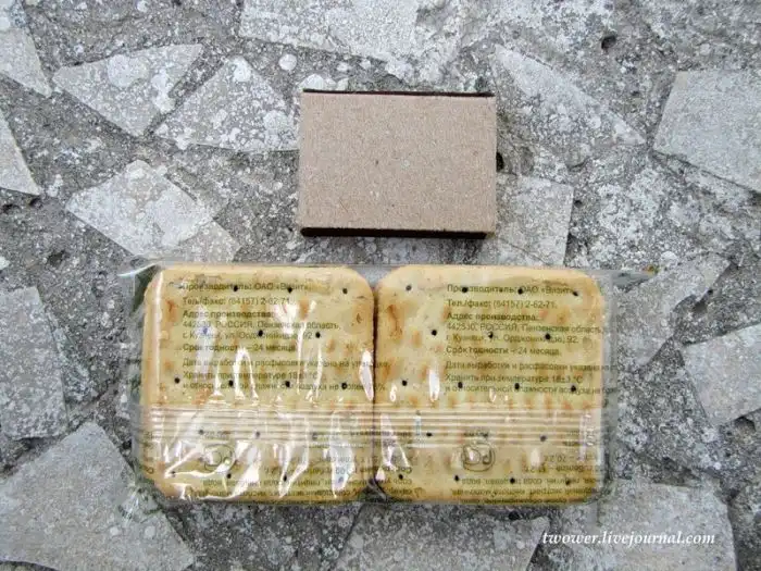 На томиче зимой в москву ездил с нами до оренбурга новобранцы ехали им точно такойже паёк выдовали, только там у кого каша была, у кого такой, а некоторым вообще не повезло "диетический" борщ попался) у мя даже эти салфетки разжигатель, галеты и сыр такой остался) ( ну потом новобранцы ходили по вогону раздовали кто чё не съел)) ну чесно скажу галеты полное гавно хлеб вкуснее, уж поверьте!