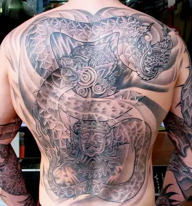 Японские татуировки поражают своей масштабностью. Если бить, так полотно.