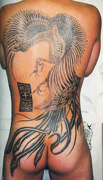 Местами есть не очень. Но не забываем, что раньше это была дань традиции. Сейчас - просто искусство. Понравились очень 2: водопад на женской спине и птица в ветвях на мужской.
