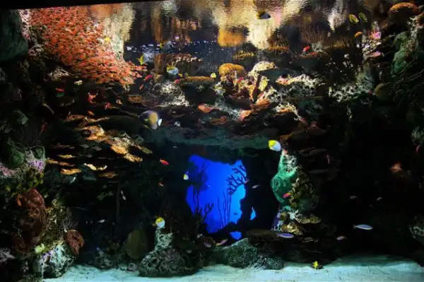 Аквариум содержит 8,5 миллионов галонов воды и 120 000 существ, более чем 500 видов из 60-и мест обитания.