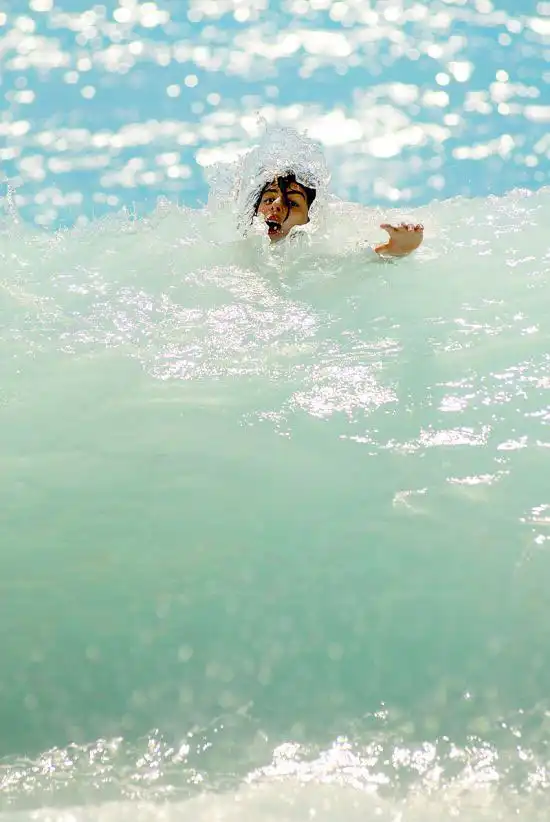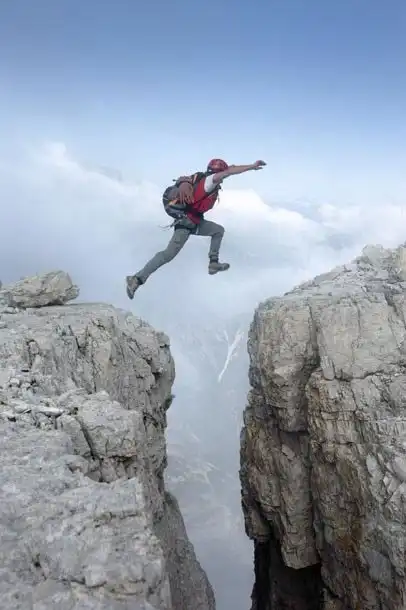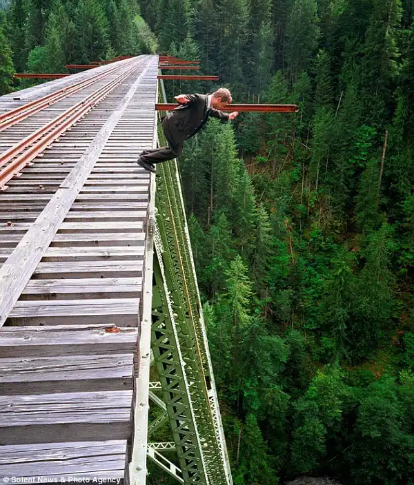 Снимок из серии фотографий американского фотографа Керри Скарбакка (Kerry Skarbakka), на которых он запечатлен в процессе падения. Во время съемки Керри максимально обезопасил себя страховочными тросами, которые он позднее убрал в Photoshop.
