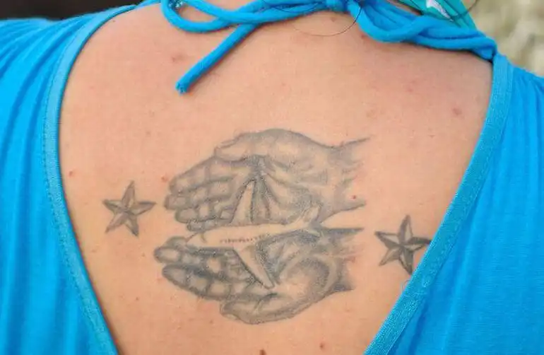 когда на теле у девушек одна-две не больших тату на теле,это норм,даже красиво,но когда всё тело,это УРОДСТВО!!!