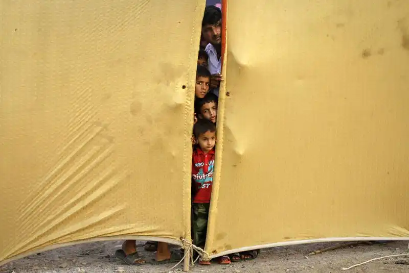 3. Местные жители смотрят через щель в тканевом барьере, которым отгородили место атаки террориста-смертника в Карачи, 19 сентября 2011 года. По меньшей мере восемь человек было убито, в том числе шесть полицейских, когда талиб-смертник въехал на машине со взрывчаткой в дом одного из высших полицейских чинов пакистанского города Карачи. По данным полиции, в машине было около 130 кг взрывчатки. (REUTERS/Athar Hussain)