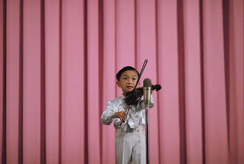 26. Мальчик выступает перед публикой в городе Разон специальной экономической зоны Северной Кореи, 29 августа 2011 года. (REUTERS/Carlos Barria)