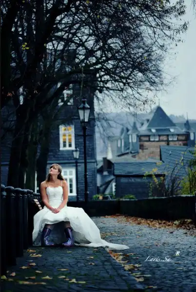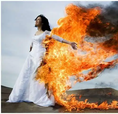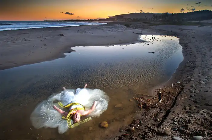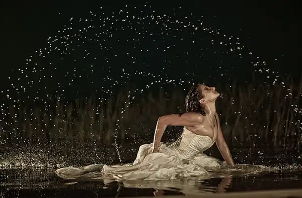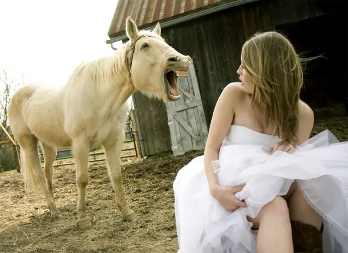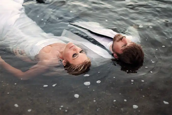 Чаще всего дело сводится к тому, чтобы невесту в кадре усадить/уложить в каком-нибудь не очень чистом месте или окунуть в воду. Но встречаются и более экстремальные варианты.