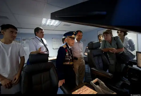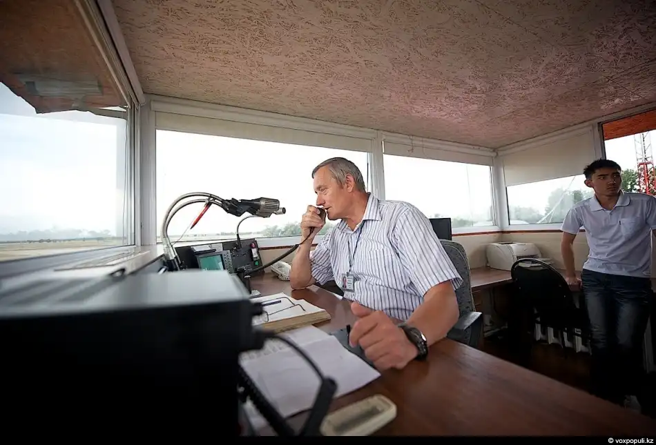 12. За пультом управления Юриий Ельцов, начальник аэродрома и один из лучших летчиков-асов. 13 лет назад Ельцов с товарищами совершил сенсационный транснациональный полет на самолете АН-2 из Алматы в США