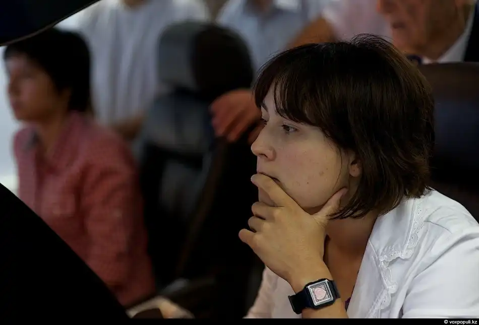 9. Бурамбаева Асель - кадет аэроклуба и новая надежда гражданской авиации: "Мне 28 лет, я замужем, есть ребенок. В аэроклуб меня затянул друг, он сам обучился летать и после его рассказов я тоже захотела. В начале освоила полеты на самолете ЯК-18Т, после пилотировала Cessna, а в данный момент летаю на спортивном самолете ЯК-52. Прошла программы простого, сложного пилотажа, сейчас учу некоторые фигуры высшего пилотажа. Поставила себе цель стать пилотом, поэтому для меня эта встреча будет очень полезной"